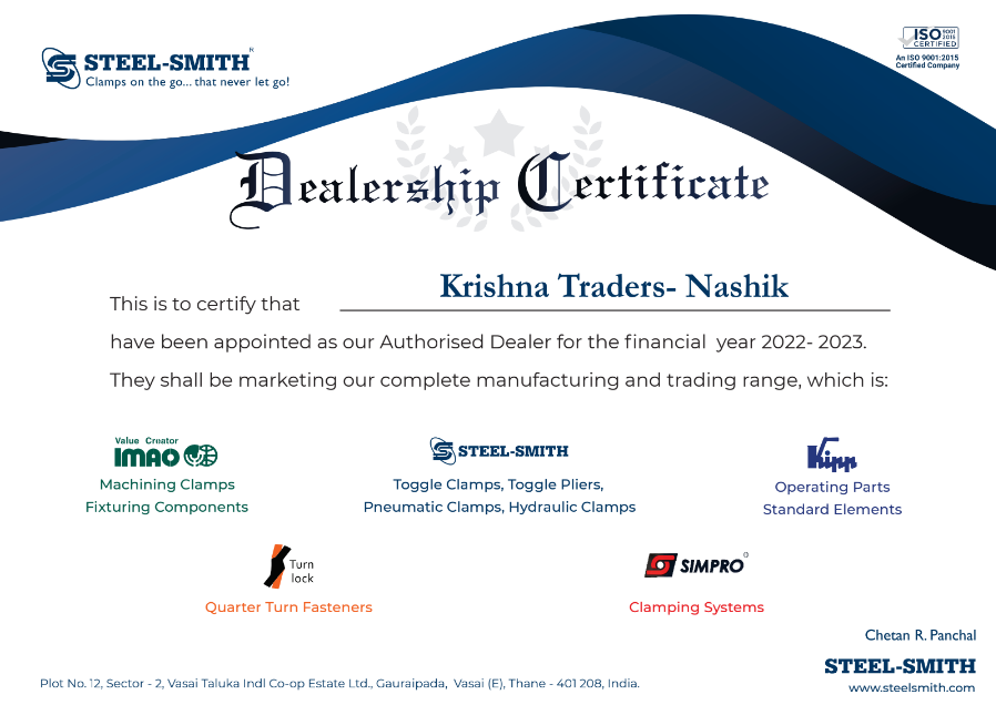 Krishna Traders is proud to be an authorized dealer of Steelsmith, a leading manufacturer in India renowned for its high-quality toggle clamps and industrial components.